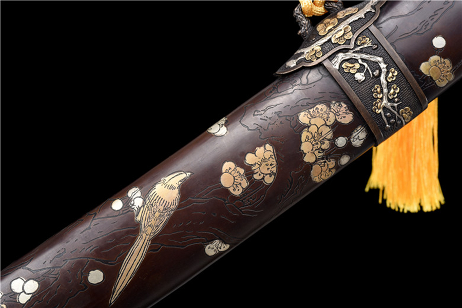 鞘材:纯铜复古手工包实木 配件:纯铜精雕鎏金鎏银