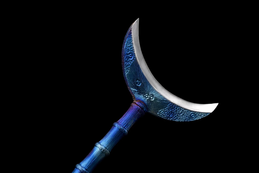 钛合金一体实心纯手工精工制作,淬火烤蓝工艺!钛合金硬.强度高,不会锈,耐腐蚀,手感轻巧,可把玩,收藏,摆设!