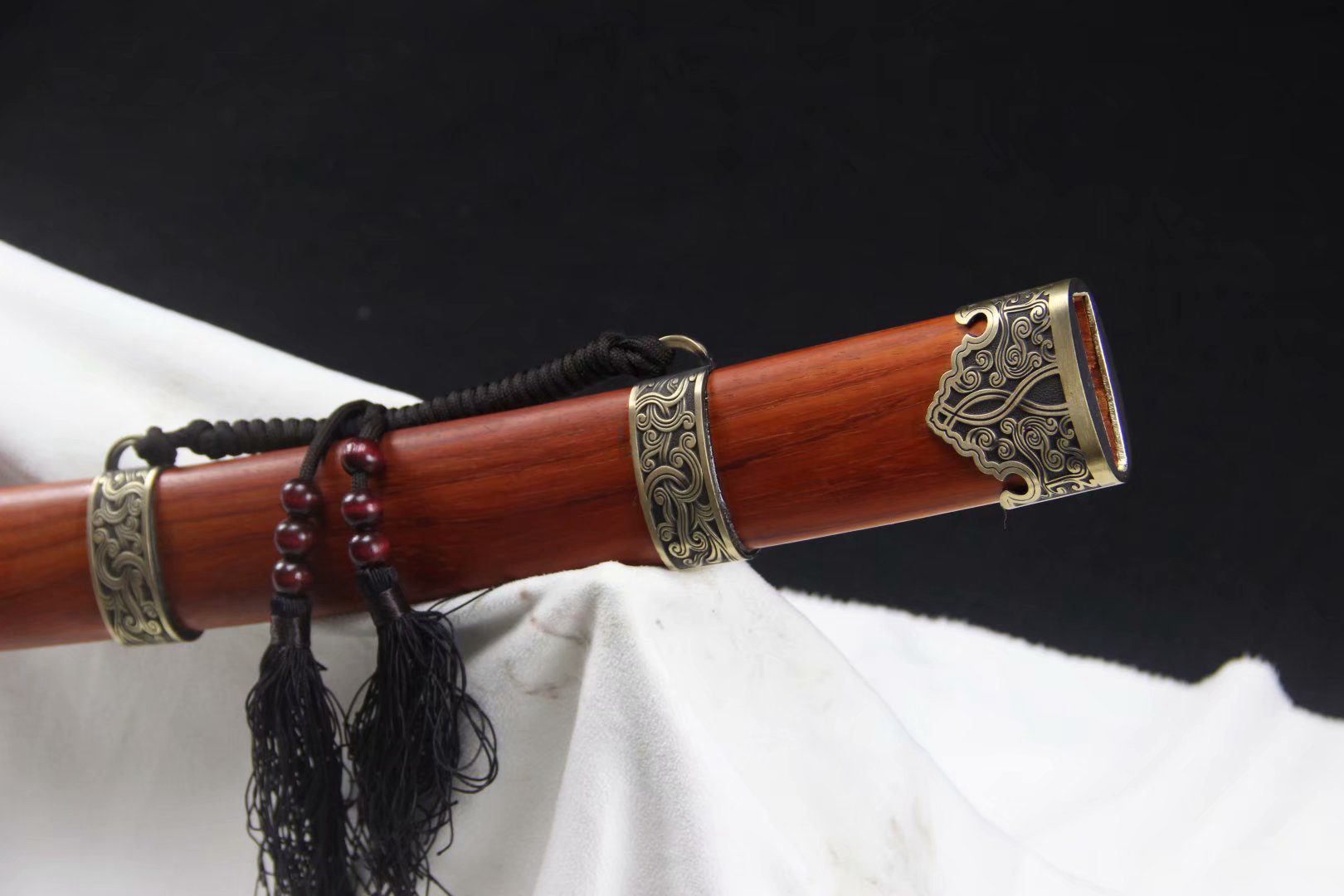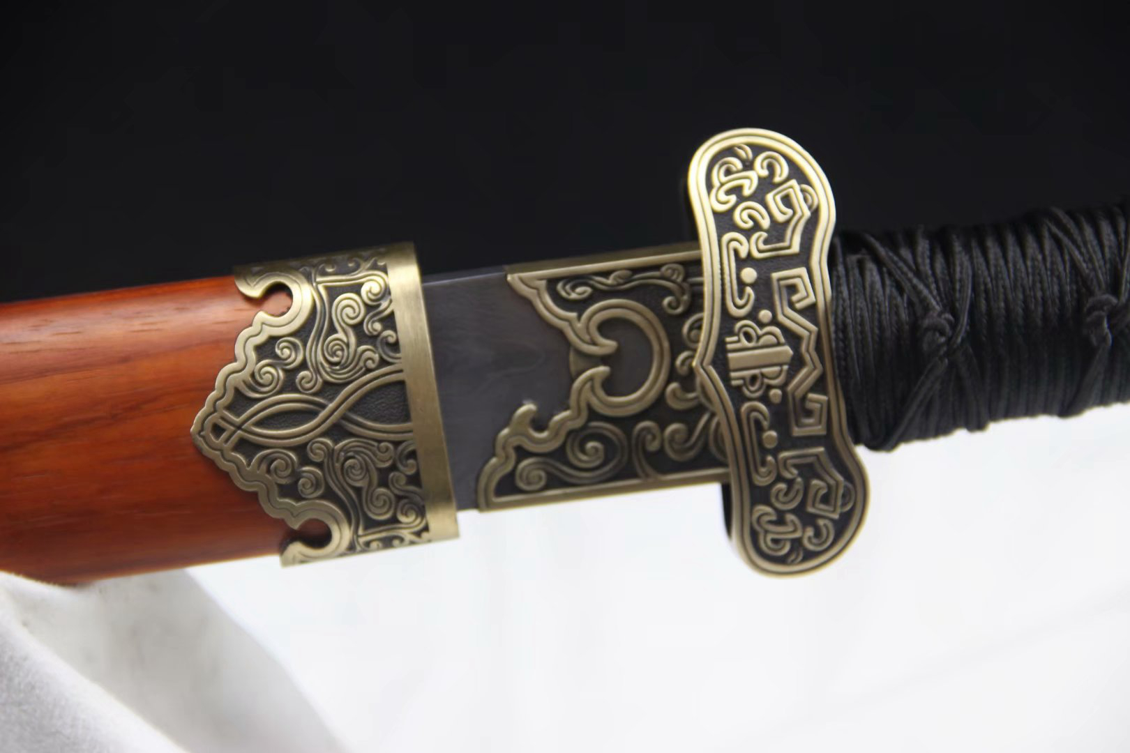 装具:纯铜精雕。剑鞘:优质红木。刀身:百炼花纹钢03851070。