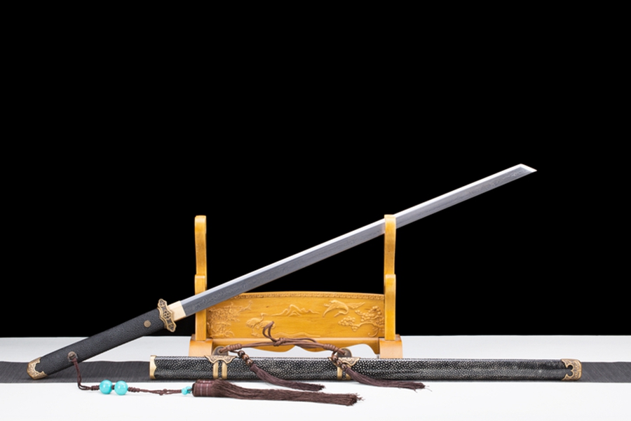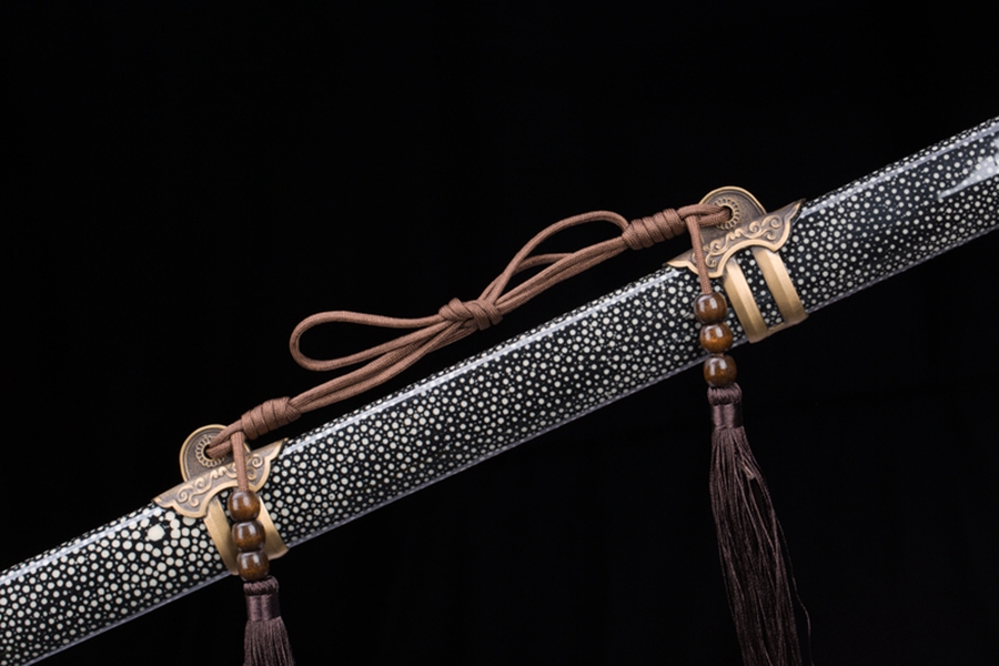 鞘材:珍珠鱼皮鞘 工艺:古法锻造 千锤百炼,手工研磨
