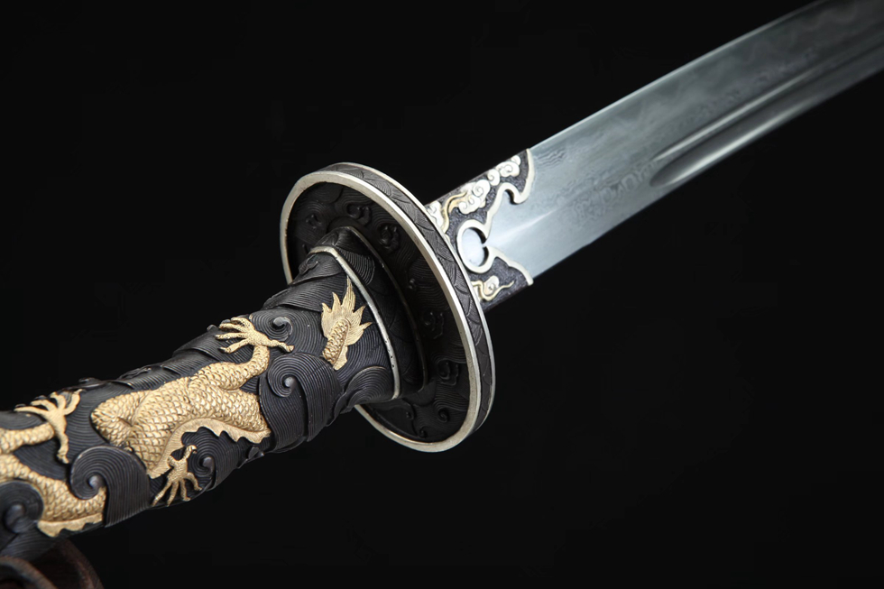 鎏金银巨龙刀(黑色鱼皮款)。