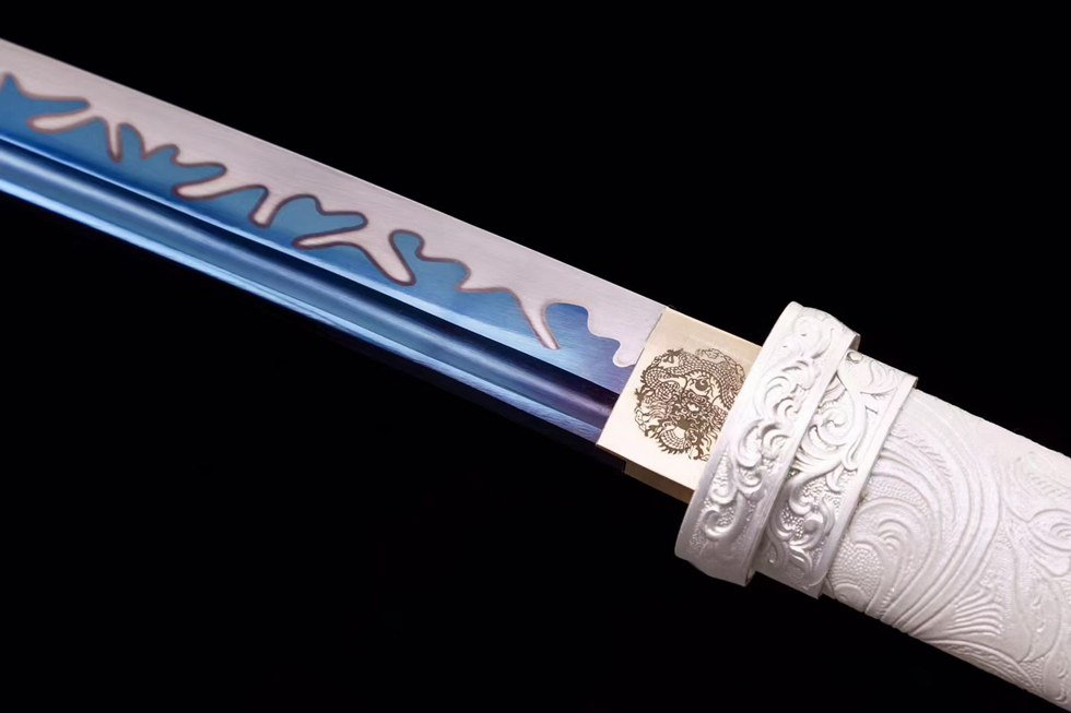 工艺:手工锻造,经过打坯、铲、24道研磨、粹火,回火、手工研磨龙泉刀剑古法制造工序制作而成,