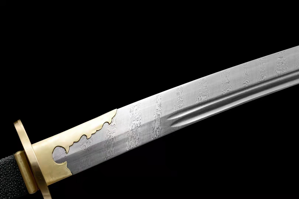 刀身采用百炼花纹钢扭转纹千锤百炼而成硬度高达60°砍铁不伤刃,纯铜贝勒清刀套装搭配绿色全包鱼皮鞘,柄材采用鱼皮全包木芯 全长95厘米,刃长70厘米,柄长16厘米,刃宽3.7厘米高端收藏、送礼佳品!