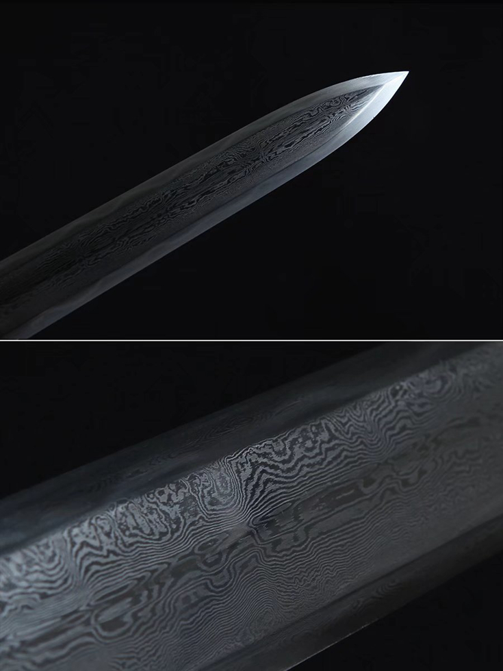 剑鞘:优质黑檀木;剑身:百炼花纹钢、八面剑身(开双槽剑身可选)、精细手磨15752500。