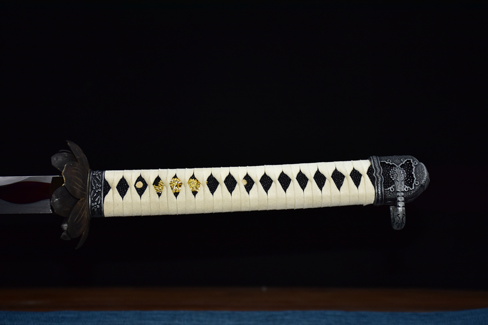 红木做旧鞘 纯铜莲花刀挡