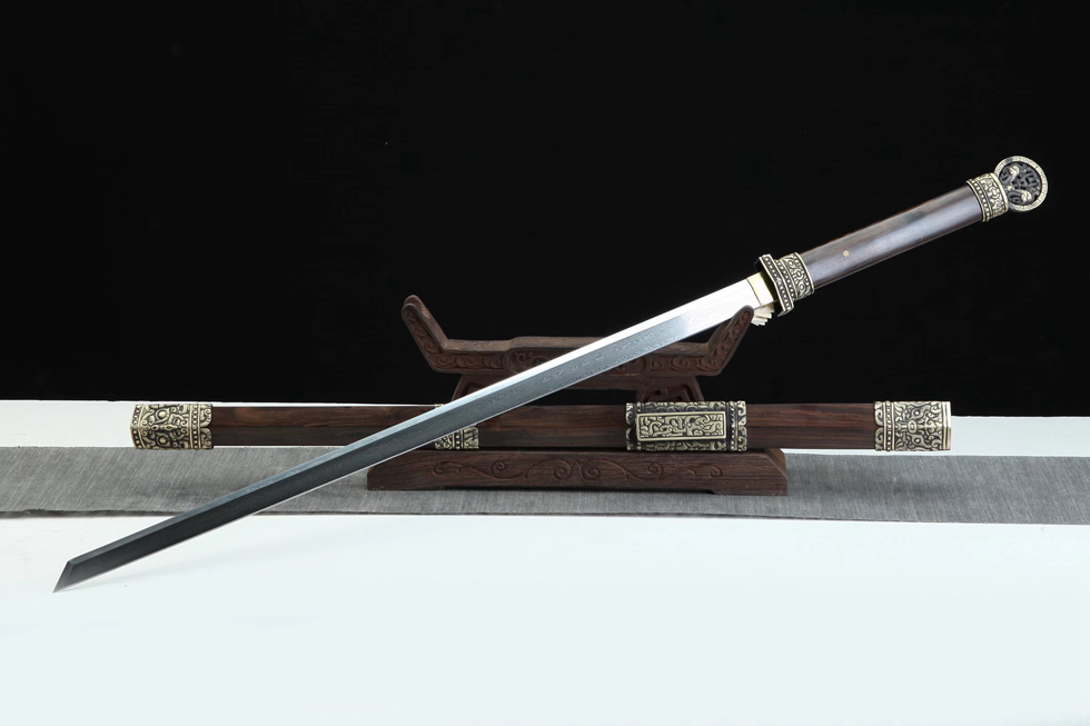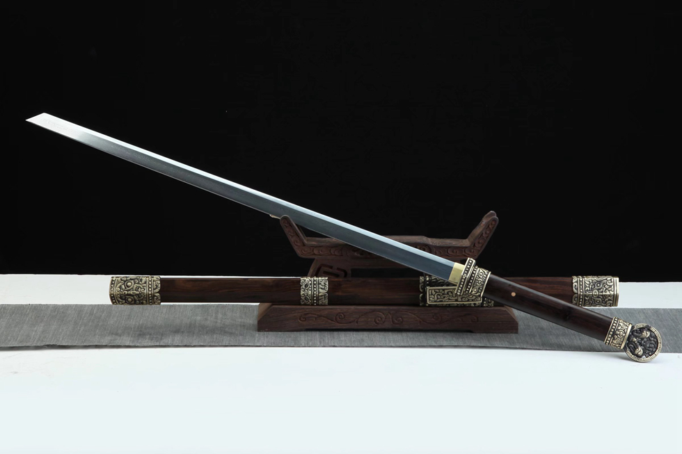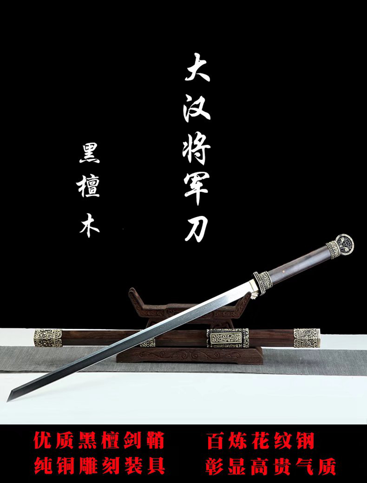 装具:纯铜精雕、纹理细腻、精细打磨做旧;刀鞘:优质黑檀木;