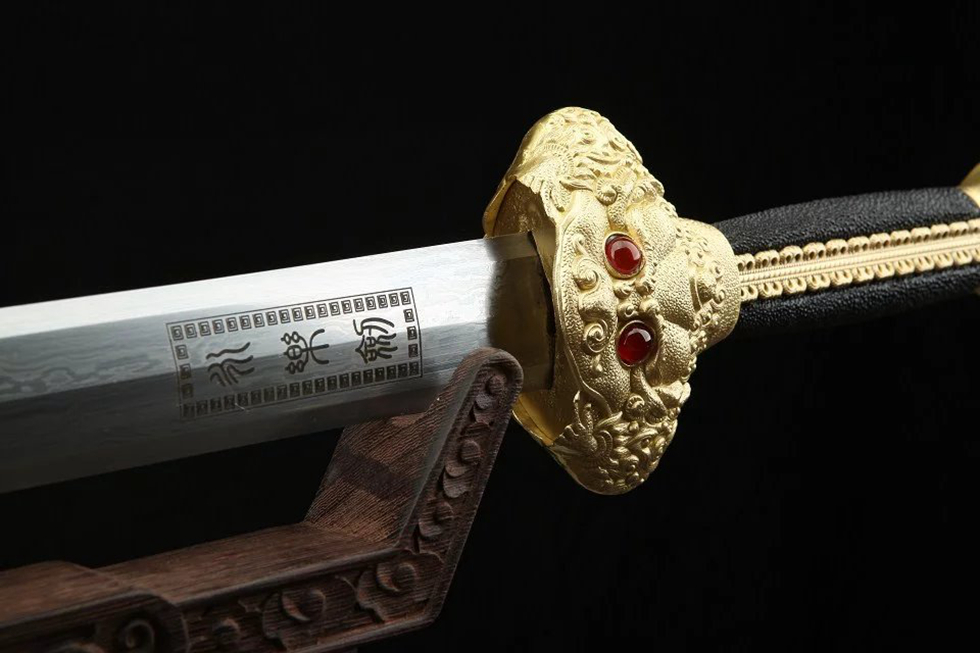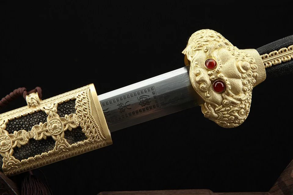 全长:98cm 除鞘长:91cm刃长:66cm 柄长:12cm刃宽:4.3cm 刃厚:1cm总重:2.94kg 除鞘重:1.91kg. 装貝:纯铜精雕、精细打磨、亮铜;剑鞘:包鲨鱼皮;剑身:百炼花纹钢、手工锻造、精细手磨01873070。烧刃另加125。
