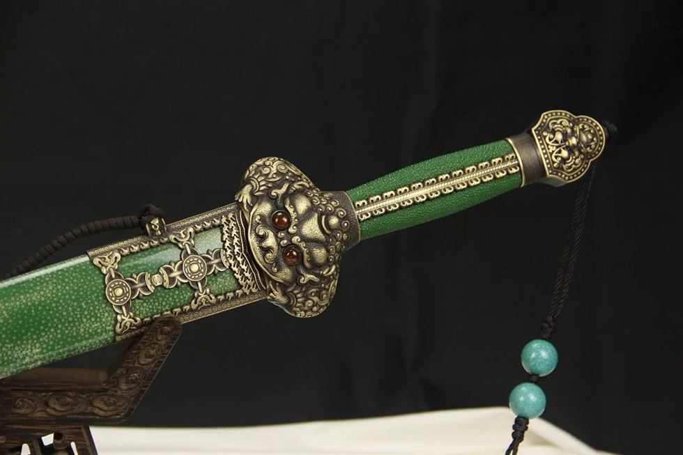 永乐剑。 绿色鱼皮、纯铜做旧、