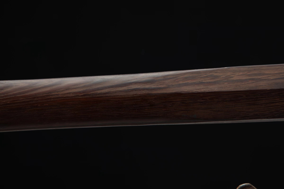 剑鞘:优质鸡翅木;剑身:百炼花纹钢、手工锻造、精细手磨18270800。百炼花纹钢烧刃另加155。