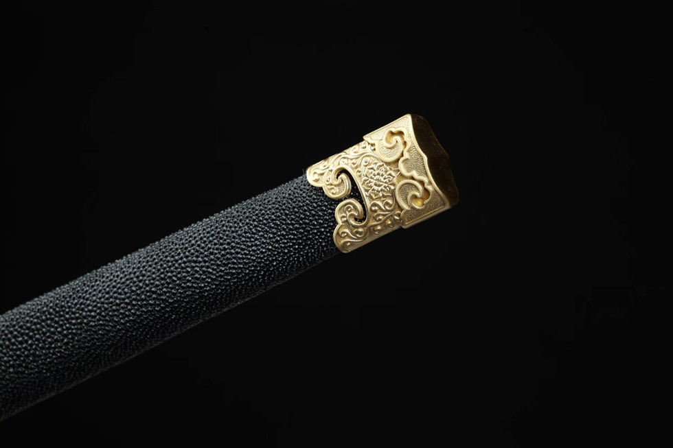 全长:110cm 除鞘长:107cm刃长:76cm 柄长:31cm刃宽:3.4cm 刃厚:0.7cm总重:2.4kg 除鞘重:1.24kg 装具:纯铜精雕、精细打磨、抛亮铜;剑鞘:纯铜手工包铜、刻花,将木梢用铜皮包上后起到防潮防湿、禁锢剑装作用、既美观又不会因天气、时间久远而收缩开裂、剑柄包鲨鱼皮高档大气;剑身:百炼花纹钢、手工锻造、精细手磨10941570。花纹钢烧刃另加155。
