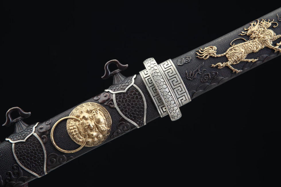 12寸古法鎏金银铜鞘麒麟唐刀。