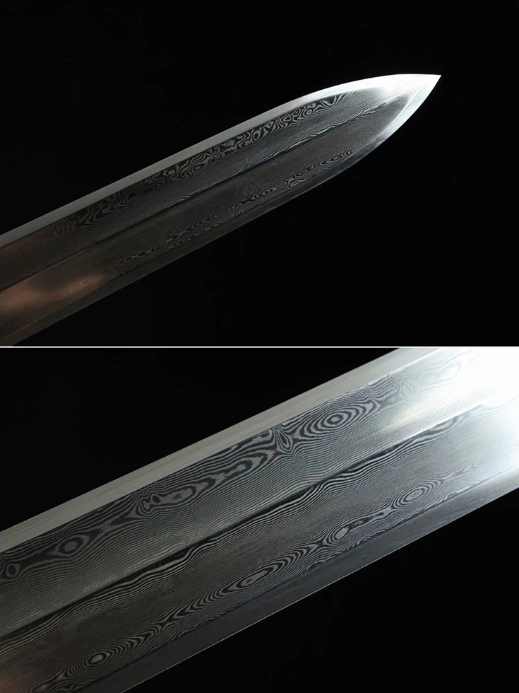 剑身:百炼花纹钢、手工锻造、大瓦轮开槽、精细手磨19381700。
