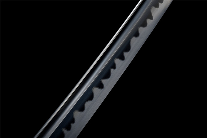 锰钢锻打弯曲90度不变形,刀身发黑工艺处理,刃口全手工【推磨研白双线】处理硬度高达60°砍铁不伤刃,带鞘全长103厘米,刃长71厘米,柄长26厘米,刃宽3.2厘米,实木漆鞘搭配精美下绪,配高端锦盒
