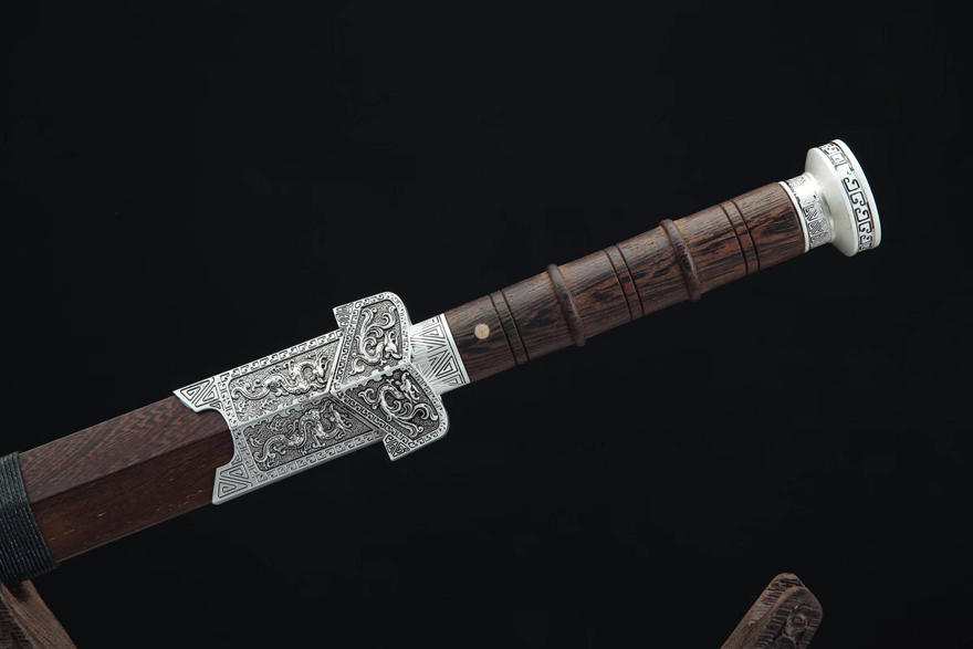 装具:合金装镀银色;剑鞘:优质鸡翅木;