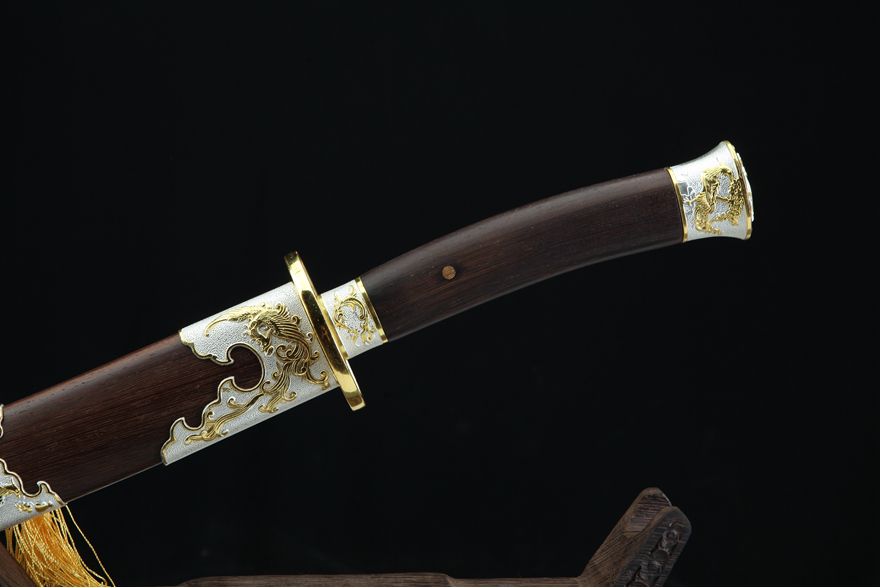 装貝:合金装镀双色;刀鞘:优质鸡翅木;