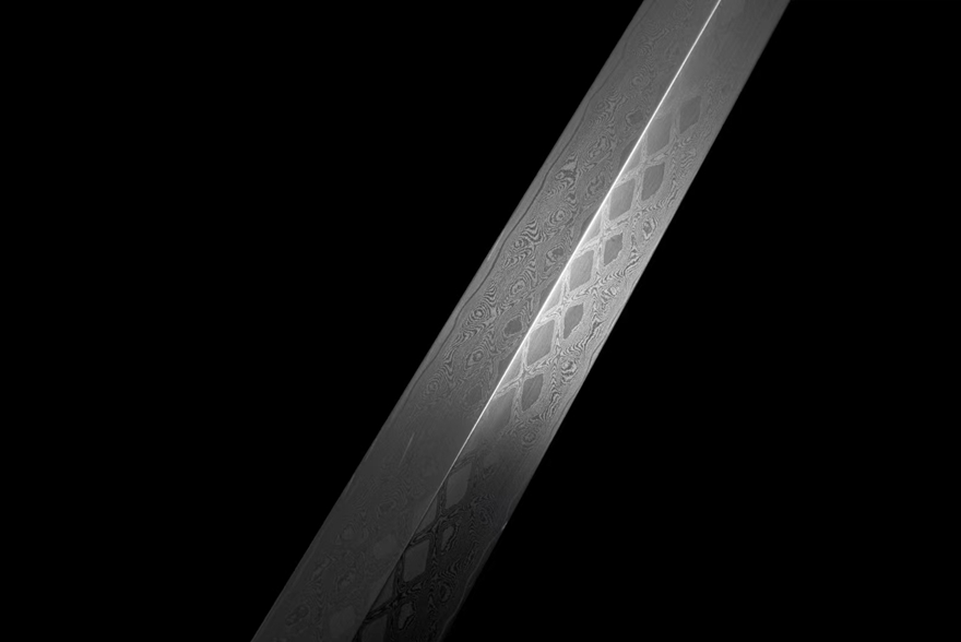 刃材: 百炼花纹钢自制纹路,菱格纹
