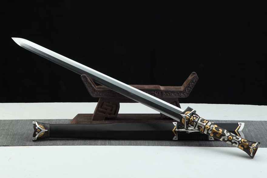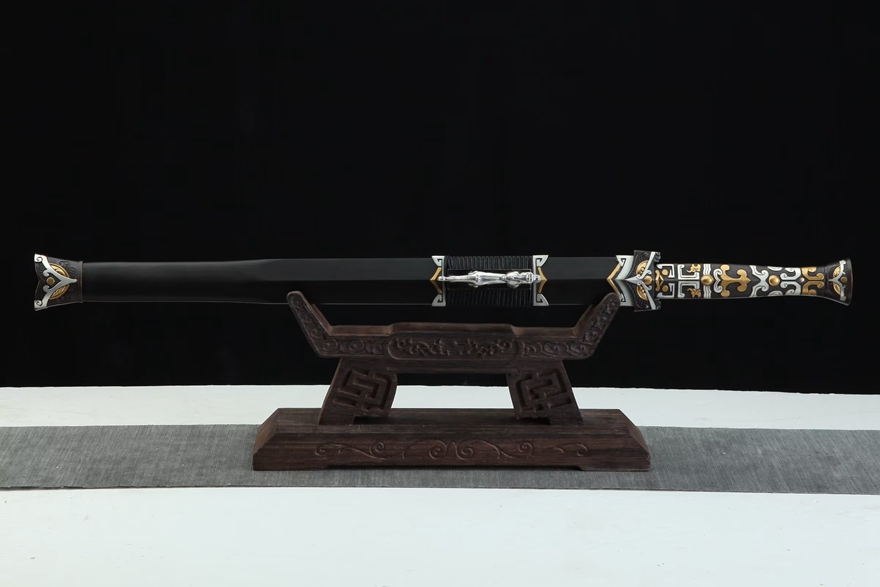 20寸鎏金银“八服汉剑”(黑檀木款)。