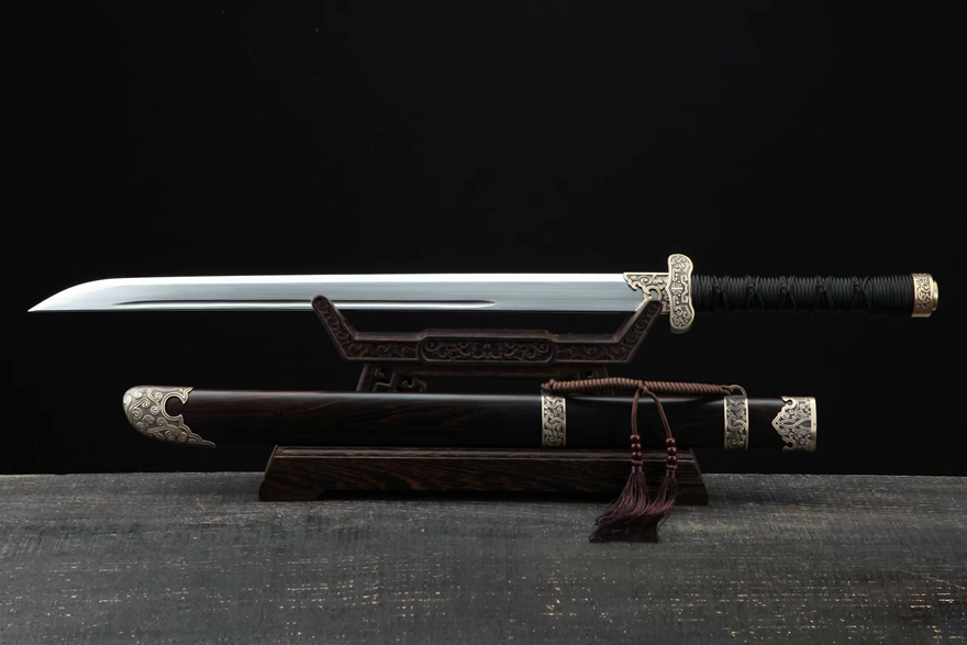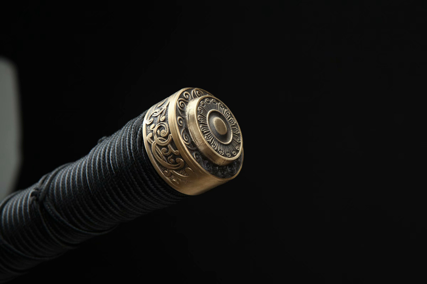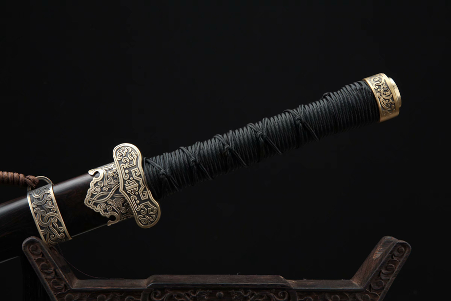 全长:89cm 除鞘长:85cm 刃长:60cm 柄长:25cm 刃宽:3.9cm 刃厚:0.6cm 总重:2.24kg 除鞘重:1.96kg装具:纯铜精雕、、打磨、做旧;;刀鞘:优质黑檀木;刀身:百炼花纹钢、手工制作、精细研磨。08021250、花纹钢烧刃另加125。