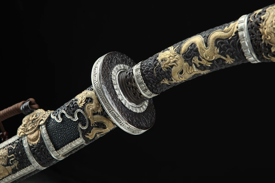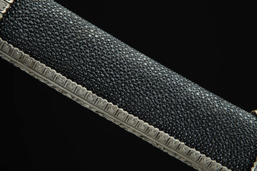 三色铜腾龙刀(黑色粗颗粒鱼皮款)。