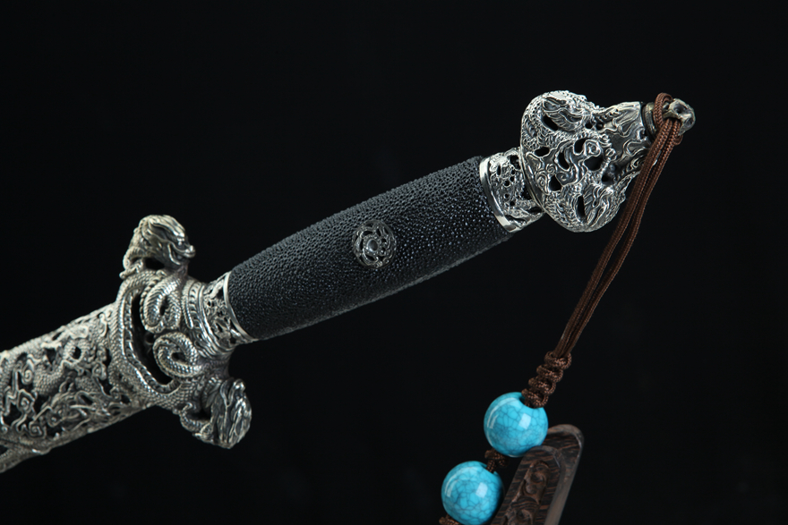 白铜装九龙剑(黑色粗颗粒鱼皮款)