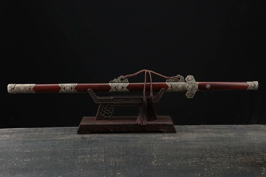 装具:纯铜精雕、精细打磨做旧;剑鞘:优质酸枝木;