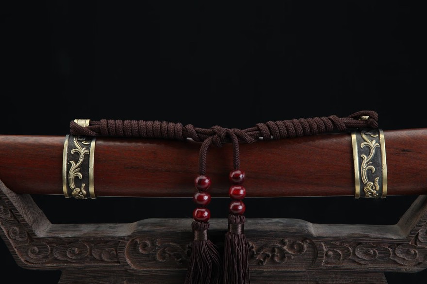 装具:纯铜精雕、精细打磨做旧;刀鞘:优质酸枝木;