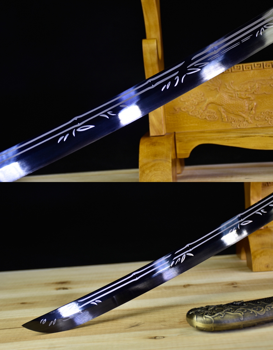 工艺:刀身以龙泉古法传统千锤百炼、经打胚、热锻、铲、锉、磨、热处理(淬火)回火、初修、精修、等数十道手工制作而成