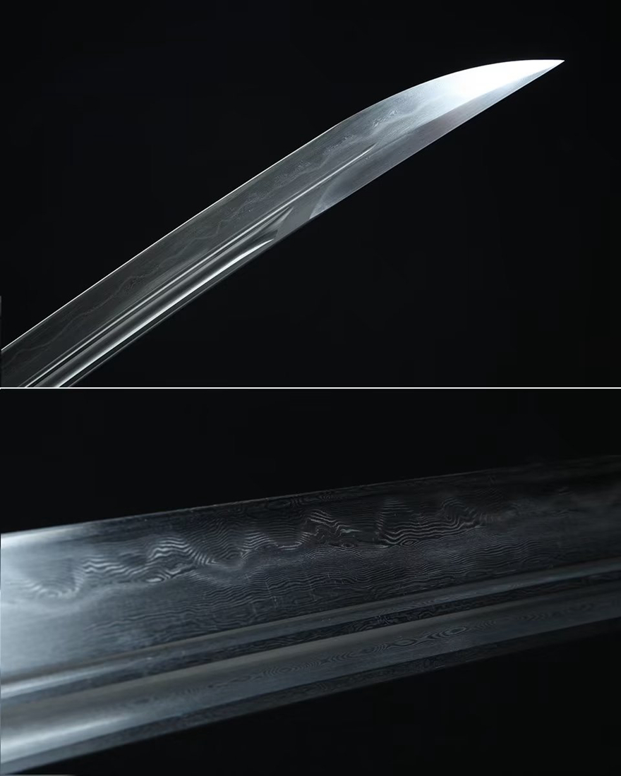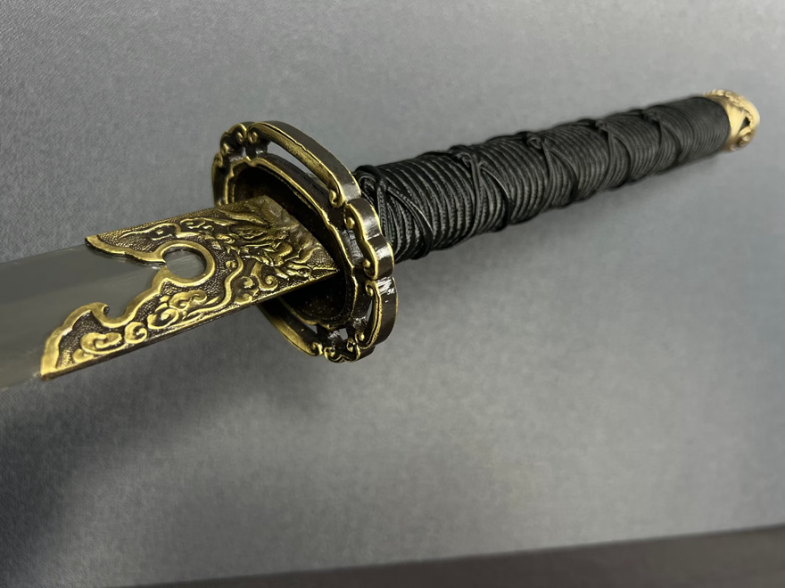 装貝:纯铜精雕、精细打磨、做旧;刀鞘:优质龙凤檀;刀身:百炼花纹钢、精细手磨、几何三角槽设计21761620。花纹钢烧刃另加155。