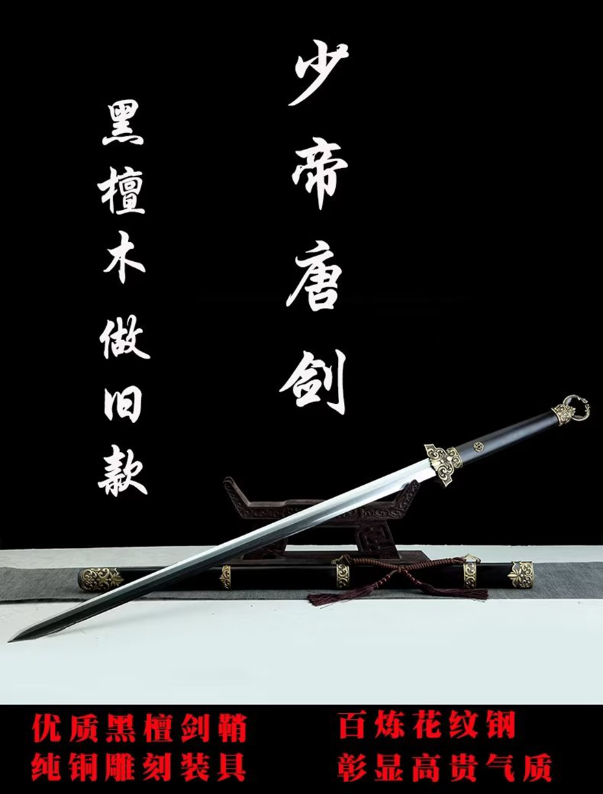 装貝:纯铜精雕、精细打磨、做旧;剑鞘:优质黑檀木;