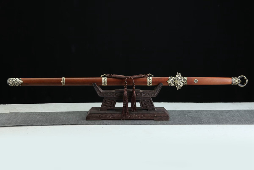 装貝:纯铜精雕、精细打磨、做旧;剑鞘:优质龙凤檀木;