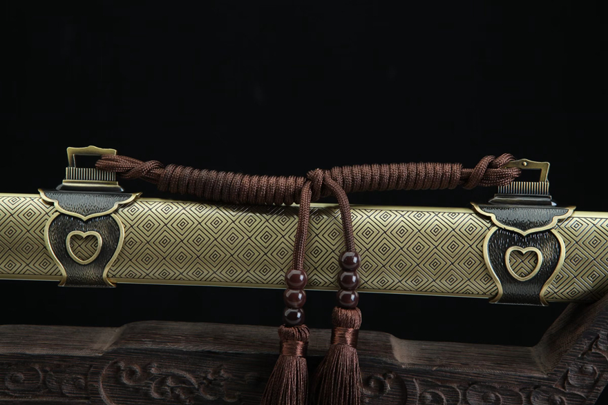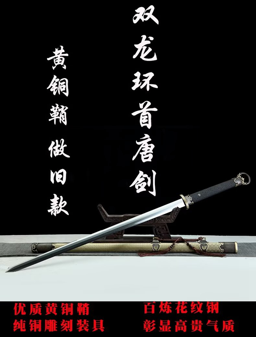 黄铜鞘—铜装双龙环首唐剑(做旧款)。