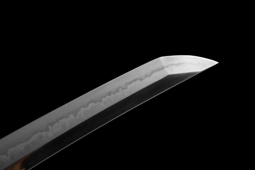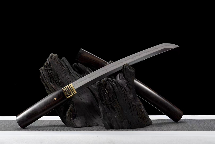 规格:全长55cm,刃长33cm,刃宽3.2cm,柄长17cm,净重0.74㎏, 刃材:T10钢 独家丁字纹烧刃,龙骨一体结构。手柄进口黑檀木,鞘材进口黑檀木,特殊工艺:古法互目丁子烧,纹路独特!纯手工十八道上刃口上研磨,收藏首选,赠礼佳品!
