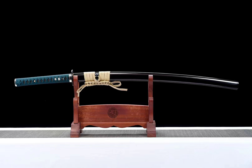 工艺:龙泉古法传统手工艺 装具:锌合金;刃材:高性能弹簧钢锻打韧性弯曲90度不变形,硬度高达60°砍铁不伤刃,带鞘全长103厘米,刃长71厘米,柄长26.5厘米。刃宽3.2厘米,净重1.34千克,刀身手工锻打镜面抛光,实木大漆鞘搭配精美下绪