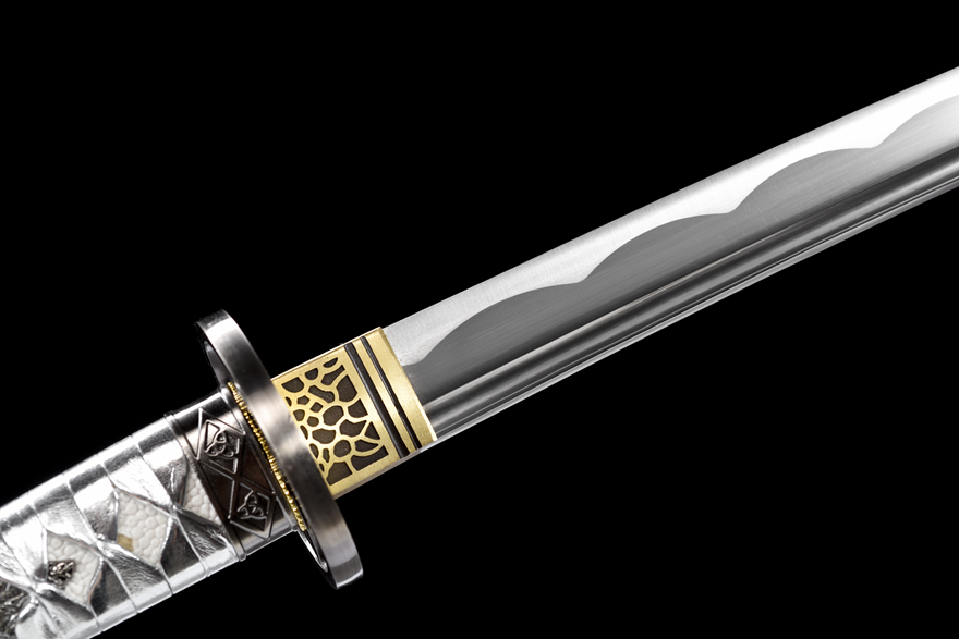 皮套中碳钢武士刀《米琼恩武士佩刀》20240324带鞘全长103厘米,刃长71厘米,柄长26.5厘米缠绕防滑皮绳,刀鞘绕银色皮绳,刃宽3.2厘米,净重1.36千克,中碳钢刀身手工锻打,配高端锦盒,实木皮套刀鞘【可背式】