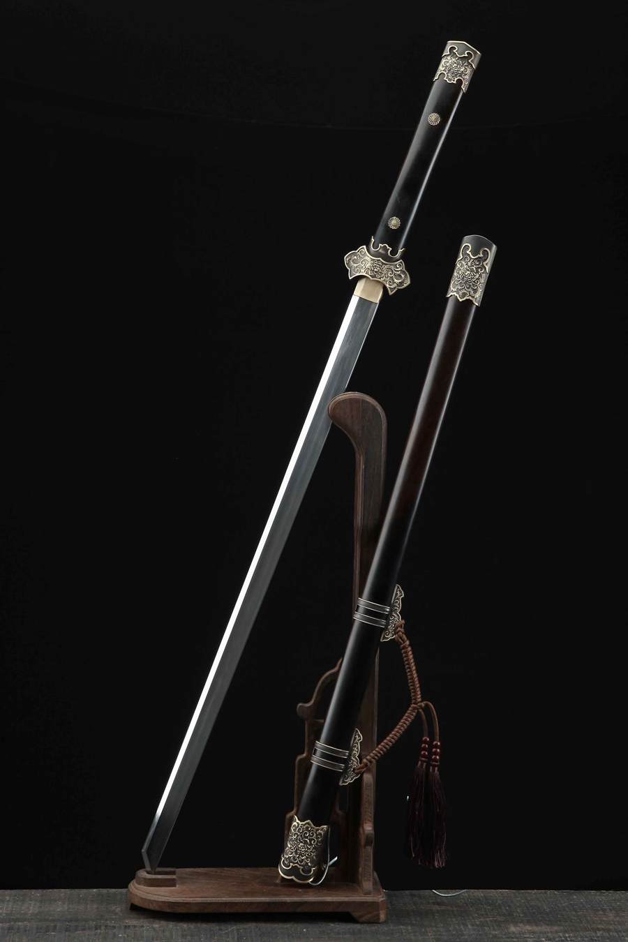 装貝:纯铜手工精雕、精细打磨、做旧;剑鞘:优质黑檀木;