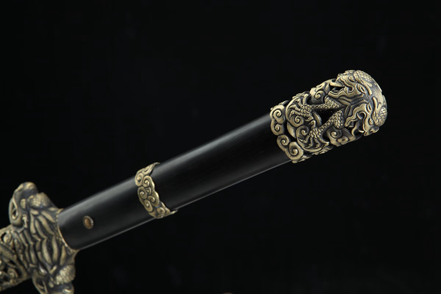 28寸巨龙剑(黄铜做旧—百炼花纹钢—黑檀木款)