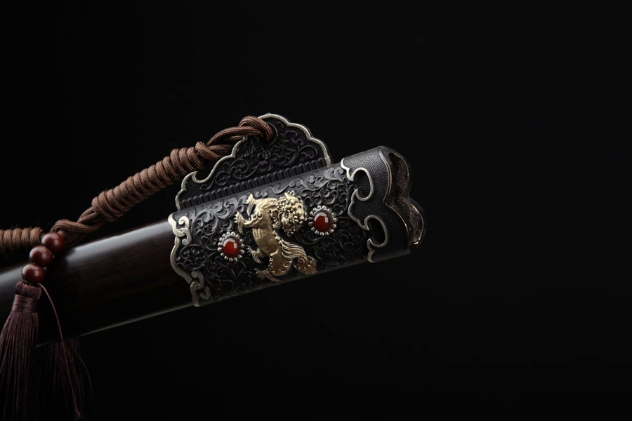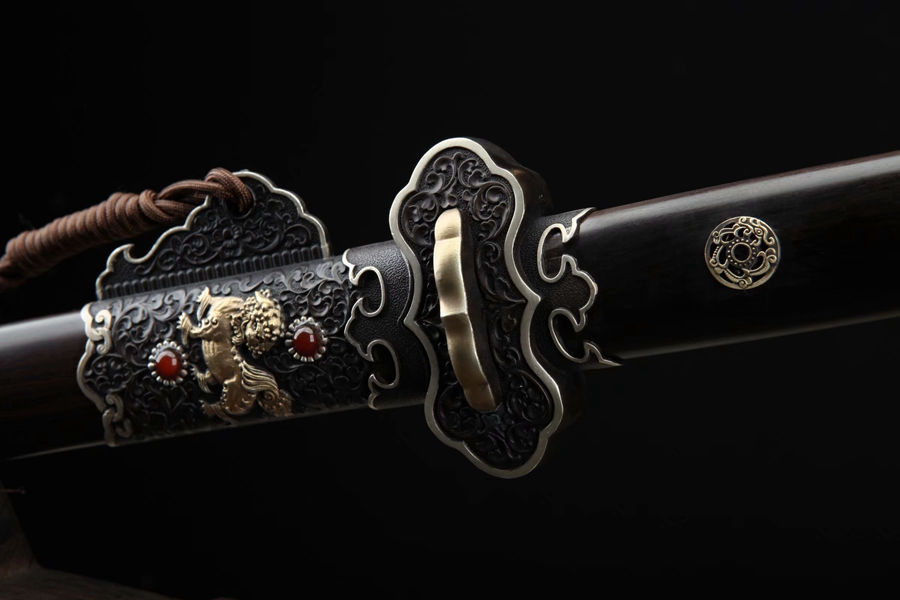 三色铜麒麟唐剑(黑檀木款)。