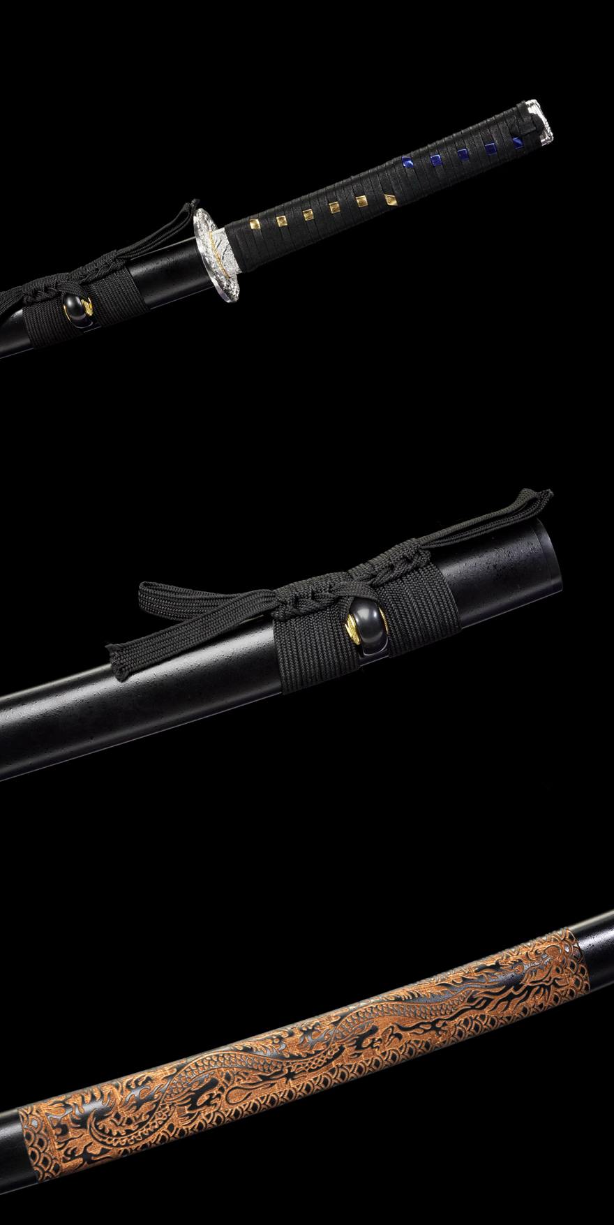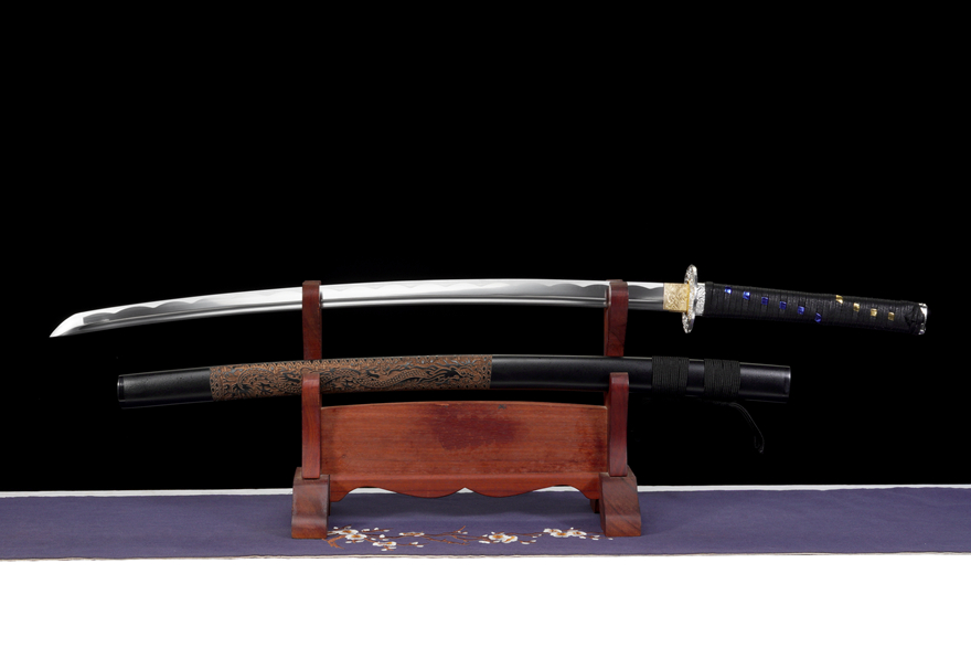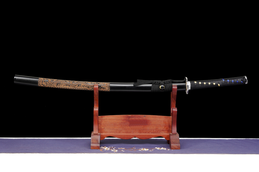 【龙图腾】 中碳钢武士刀20250300『尺寸』:全长102cm 刃长73cm 柄长26cm 刃宽3.2cm,全重1.26kg 『刃材』:中碳钢『鞘材』:实木雕刻漆鞘『适合』:收藏 乔迁送礼 武术健身 精美摆设,配精美锦盒