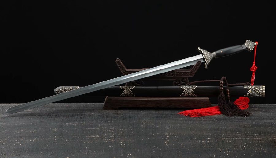 装貝:纯铜精雕、做旧;剑鞘:优质黑檀木;剑身:百炼花纹钢、起脊软剑 04651380