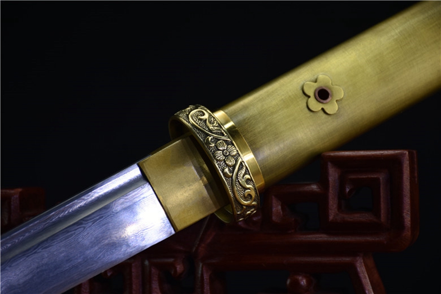 刃材:花纹钢 鞘材:纯铜