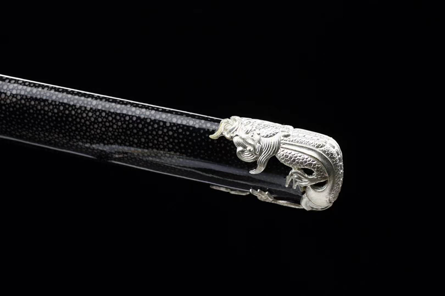 刃材:百炼钢 剑鞘:木胎包鲛鱼皮 装具:纯铜镀银