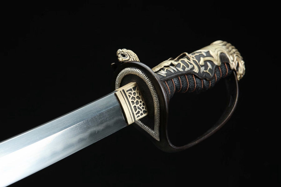 三色铜—九狮军刀(黑色鱼皮—四面刀身款)。
