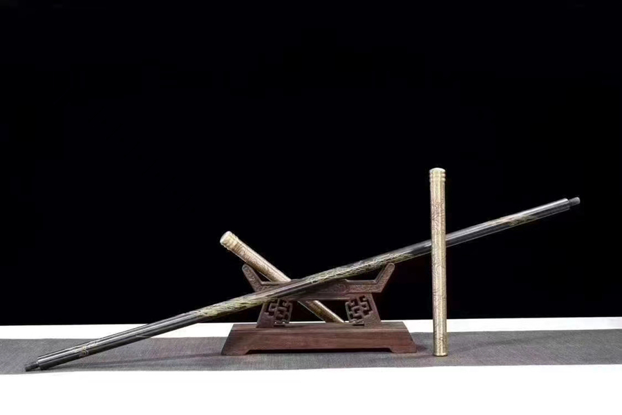 材质:棍头实心黄铜(雕刻祥云) 柄材:实心高锰钢(雕刻缠绕金龙)