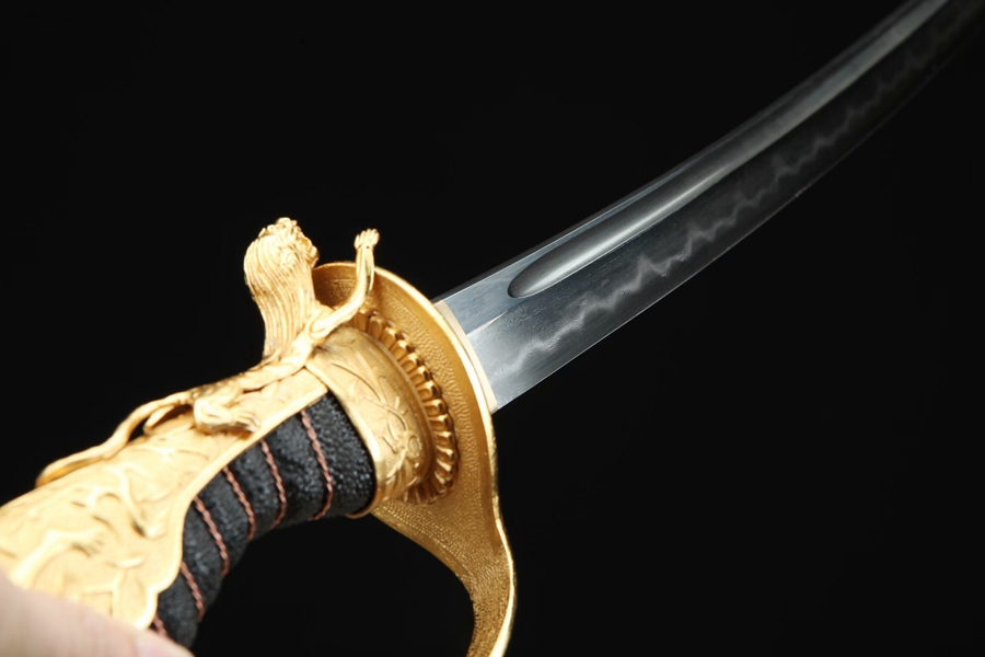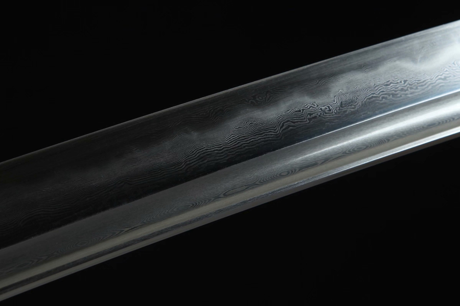 刀柄:包鲨鱼皮;刀身:百炼花纹钢,手工开三角刀槽、古法覆土烧刃、精细手磨10565000。
