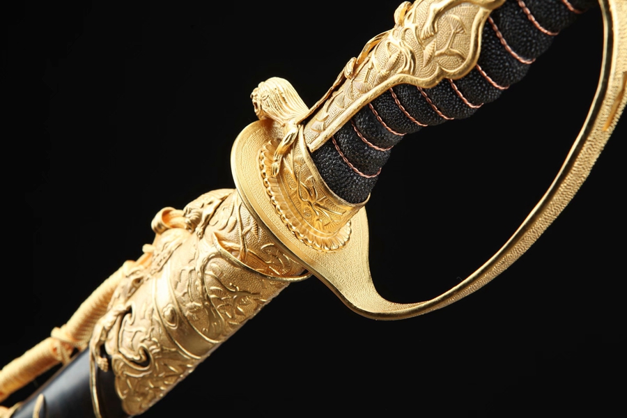 装貝:纯铜手工精雕、精细打磨、镀24K真金;刀鞘:优质黑檀木;