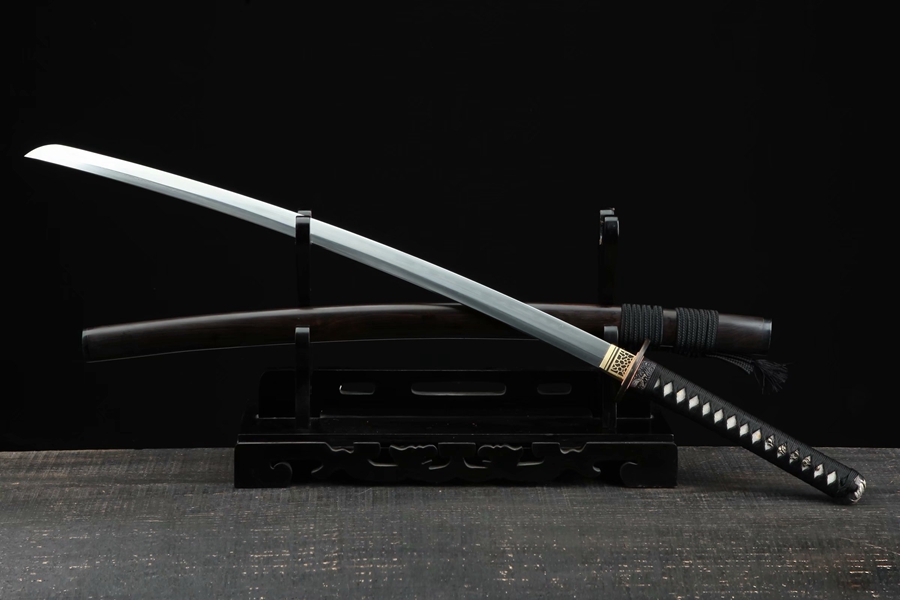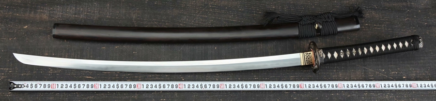 三色铜“青龙刀盘”武士刀(黑檀木款)。