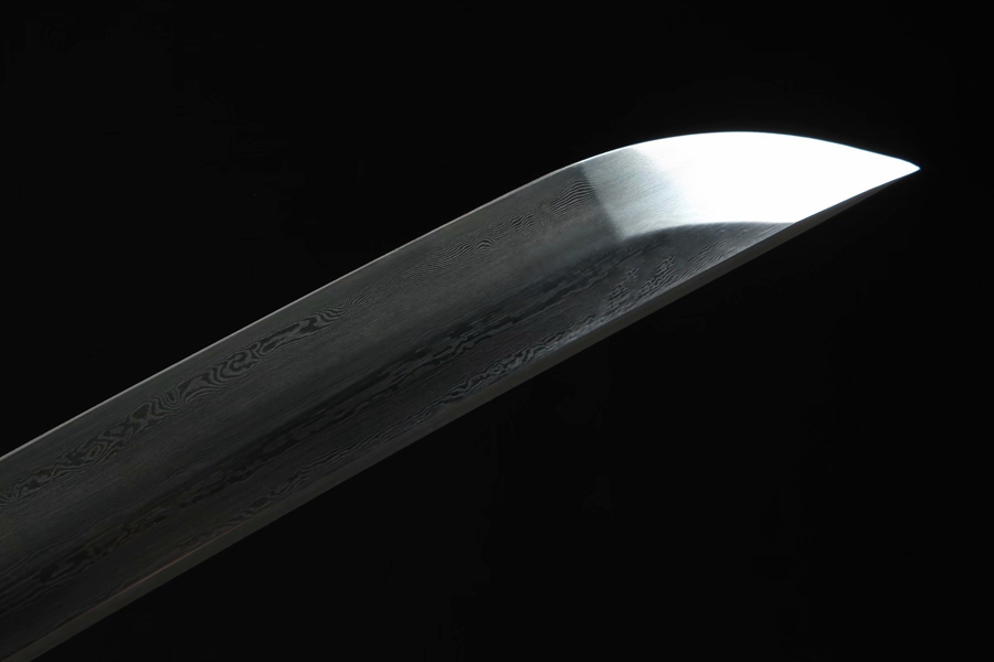 刀鞘:优质黑檀木、并镶嵌牛角;刀身:百炼花纹钢、精细手磨10751500。花纹钢烧刃另加155。