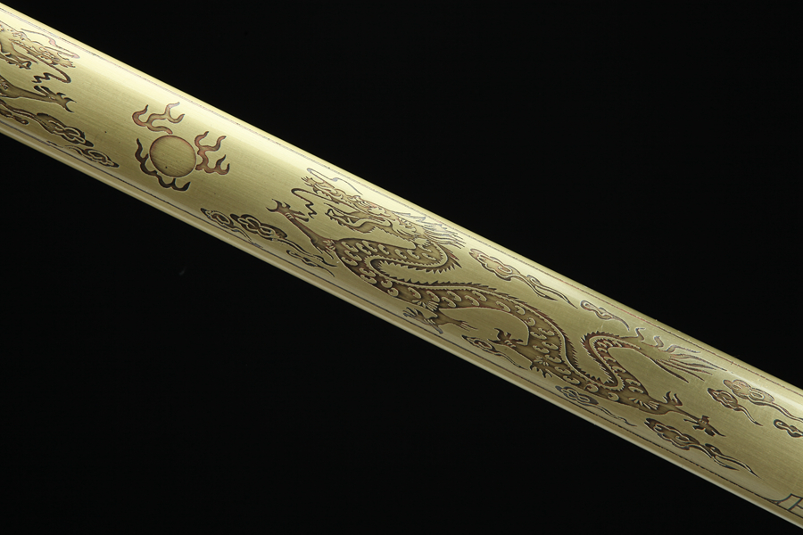 “双龙戏珠”简装唐剑—黄铜鞘。