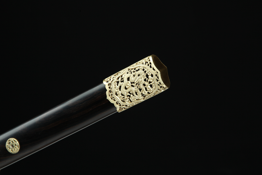 装具:纯铜镂空精雕、精细打磨、亮铜;剑鞘:优质黑檀木;