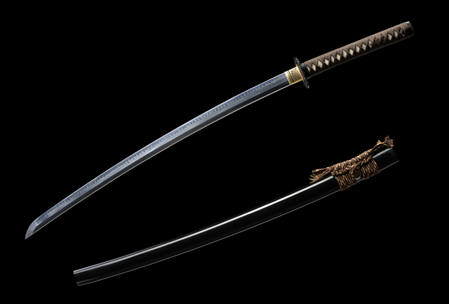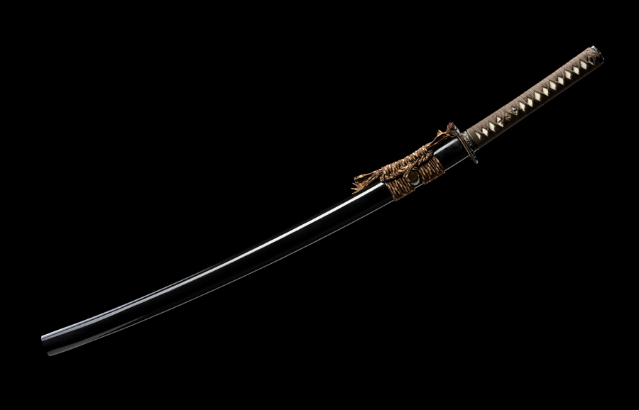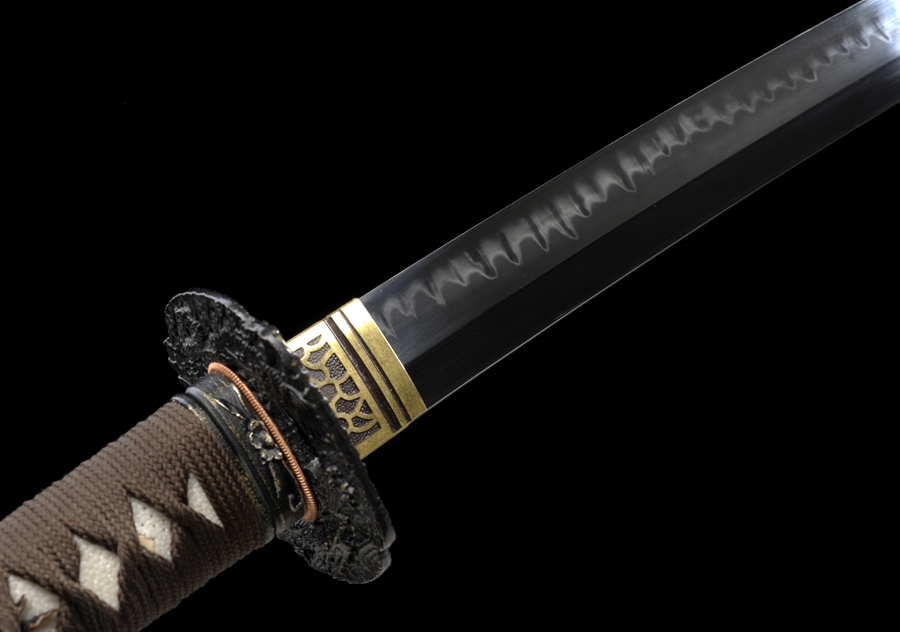 本作品由传统的敷土烧刃工艺进行局部淬火,独特的钉子纹明显且突出。手柄使用高质量